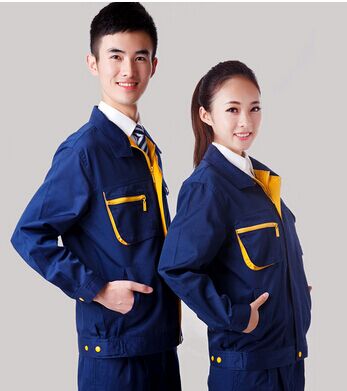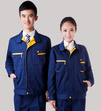 JL-QD249東莞工作服 以深藍(lán)色為主色,胸前采用黃色搭配,醒目,工業(yè)感強(qiáng)。前兜撞色拼接,走線細(xì)致,實(shí)用性強(qiáng)。左中腰間口袋均采用雙層設(shè)計(jì),傾斜線條,穩(wěn)重大氣