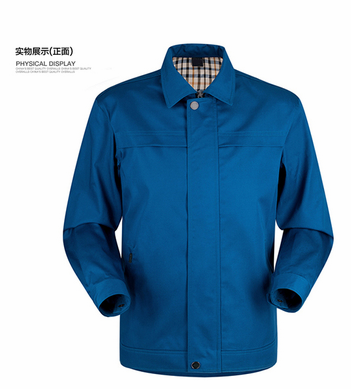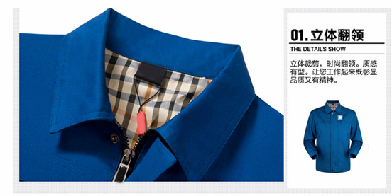 JL-QD217東莞廠服以寶藍色純色為主色,領口采用立體式翻領,外側插兜線條感十足,甄選高品質面料,讓您穿著舒服,時尚