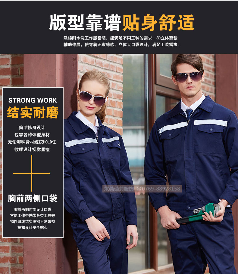 高品質全新形象,經典設計,立體裁剪,時尚翻領,質感有型。走線細致,優質暗扣,實用性強。胸前口袋撞色拼接,雙明線縫制既時尚又耐用,即使在下班之余也可以穿。