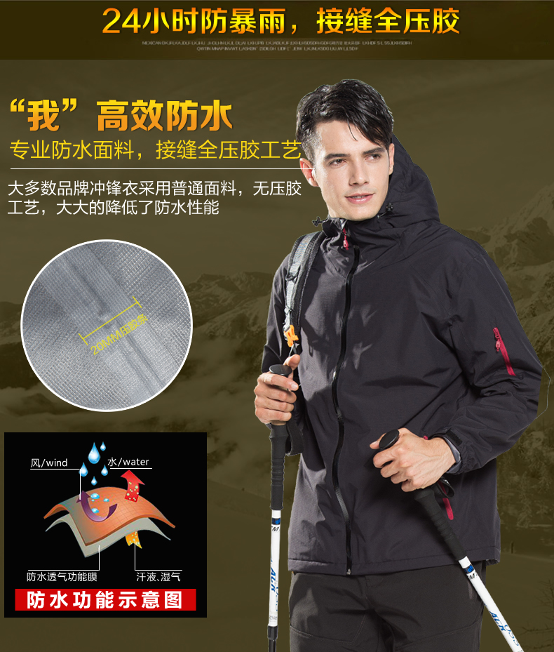 辦公室沖鋒衣可拆卸 防寒防水沖鋒衣JL-567